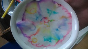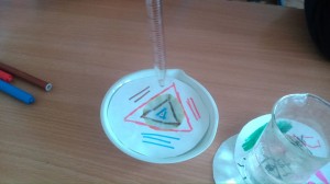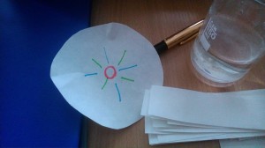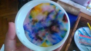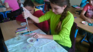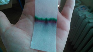 Tentokrát sme sa venovali chromatografii. Pomocou chromatografie, čo je jedna z metód na oddelenie zložiek zmesi, sme zistili farebné zloženie jednofarebných fixiek - čiernej, fialovej, modrej, hnedej, zelenej...a zároveň sa nám vytvorili farebné škvrnité filtračné papieriky.